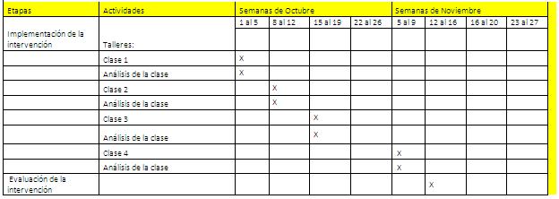 TIEMPO: 45 minutos, 1 vez por semana, en el 5º periodo de clases, durante 1 mes desde el lunes 1 de Octubre.