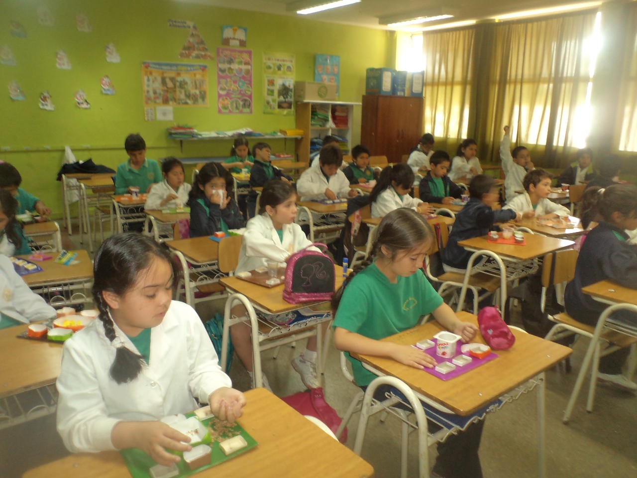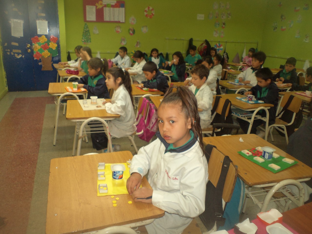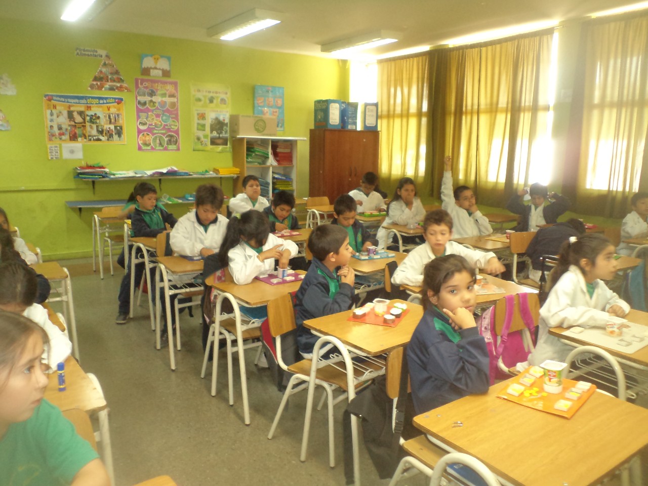 Cada día jueves se llevó a cabo una sesión del proyecto de intervención, se ponían las mesas formando un cuadrado y todos trabajaban en base a una actividad que la docente explicaba en el centro de la sala y del cuadrado. Luego se repartía el material concreto que se utilizaría, y finalmente se evaluaba la participación de todos y la comprensión de los contenidos.